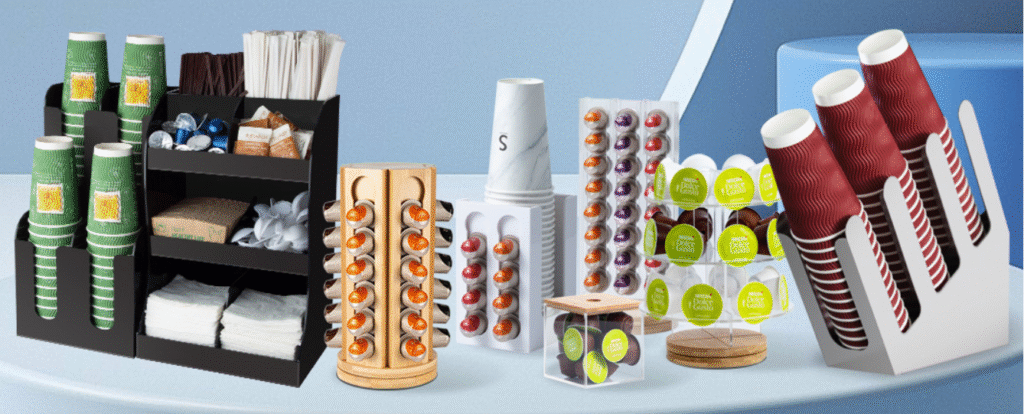 These F&B displays will speak positively to your brand.If you are promoting a new drinking product, you can display it here.The jars in front of the displays are perfect for sweet candies partnered with the drinks.They come in striking colours and premium designs, which make them more appealing. Product .